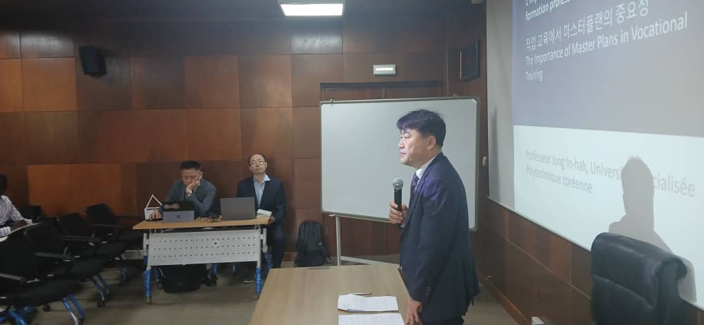 S’en est suivi l’intervention du Directeur du Centre National de Formation des Formateurs et de Développement des Programmes qui a souhaité la bienvenue à la délégation coréenne et a par la suite exhorté tous les formateurs à faire preuve de ponctualité et d’assiduité afin de profiter au maximum de cette session de formation.